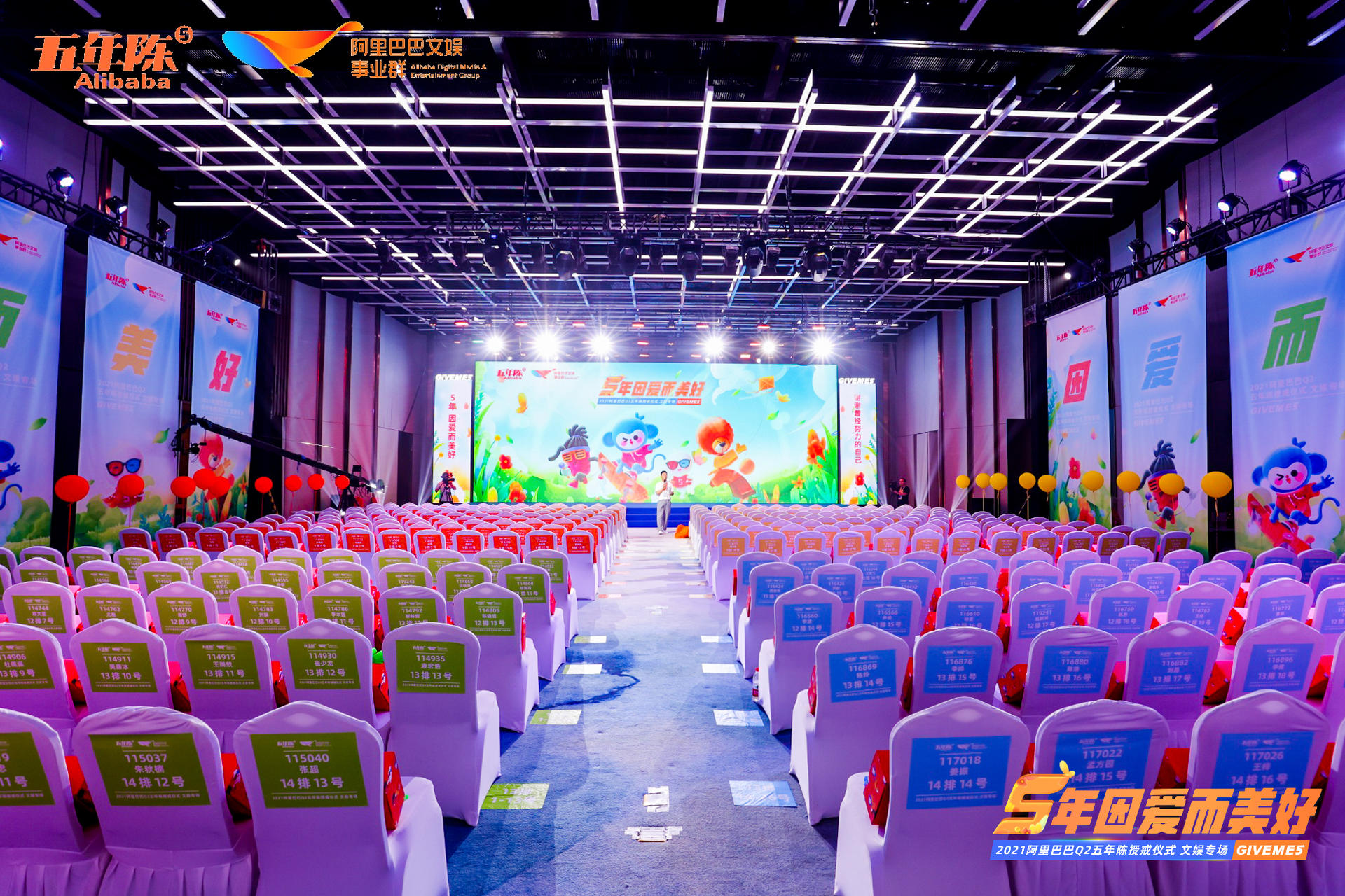 阿里人常說, “一年香,三年醇,五年陳”,我們用酒來(lái)形容阿里員工在這里的成長(zhǎng),這就是年陳文化。滿五年的阿里人,都會(huì)拿到一枚定制的白金戒指,它代表相信,也寓意傳承。除了戒指以外,其他環(huán)節(jié)也頗有儀式感,進(jìn)入內(nèi)場(chǎng),是阿里給每一位到場(chǎng)員工信封拼接的活動(dòng)主題墻,信封上還用心的寫上了員工的名字,簽到領(lǐng)取五年陳定制絲巾后,即到主題墻前領(lǐng)取屬于自己的信。進(jìn)入主會(huì)場(chǎng)的通道不僅以“5”作為造型,里面也是大有玄機(jī),是到場(chǎng)員工在阿里五年的照片布置而成,員工們紛紛找到自己的照片并驚喜合影。