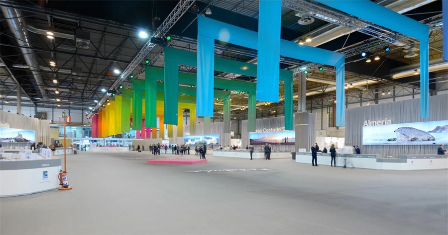 西班牙國際旅游展的安達盧西亞展區(qū)在物理空間和虛擬空間上都非常令人驚訝。在地面上,從觀眾的視角出發(fā)的設計思路,改變了6000平方米的溝通體驗。在展區(qū)的數(shù)字環(huán)境搭建中,也使空間與整個公眾的互動倍增,首次將信息完全數(shù)字化、移動化和可定制化。