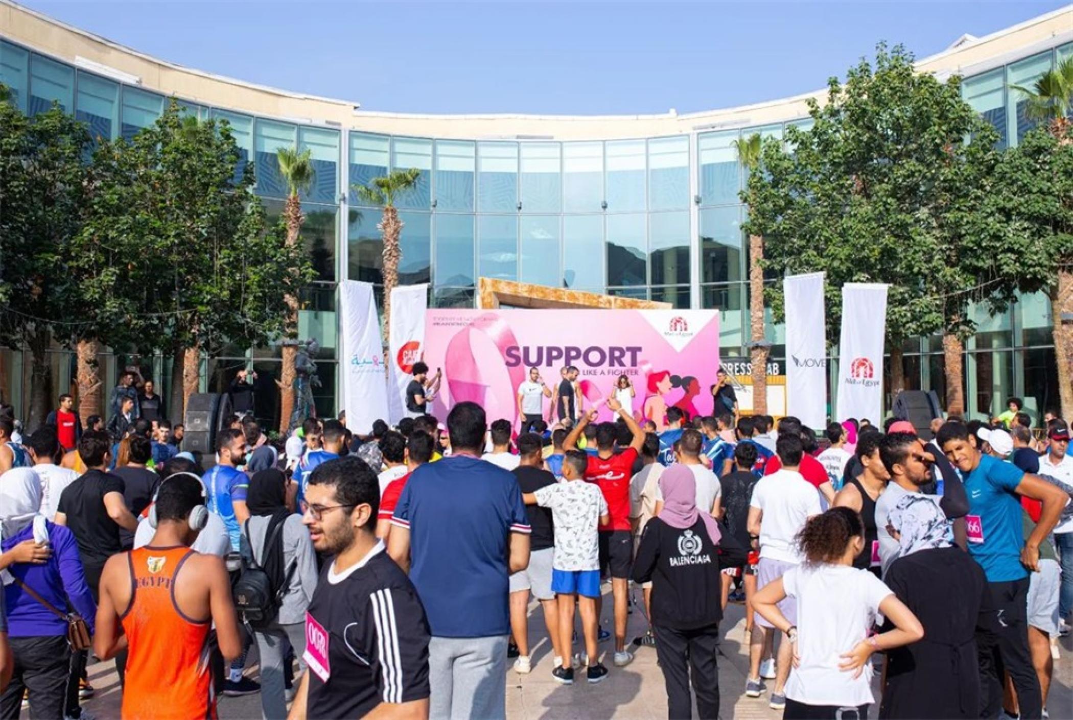 埃及購物中心(Mall of Egypt)是迪拜的阿聯(lián)酋馬希德·阿爾·弗泰伊姆集團在埃及投資的購物中心。埃及購物中心在購物中心內(nèi)部舉行了“粉紅跑”活動,以贊美那些面對乳腺癌的女性力量和支持乳癌斗士和乳癌幸存者,同時還向大眾宣傳乳腺癌知識,為了健康而跑,為了支持而跑。