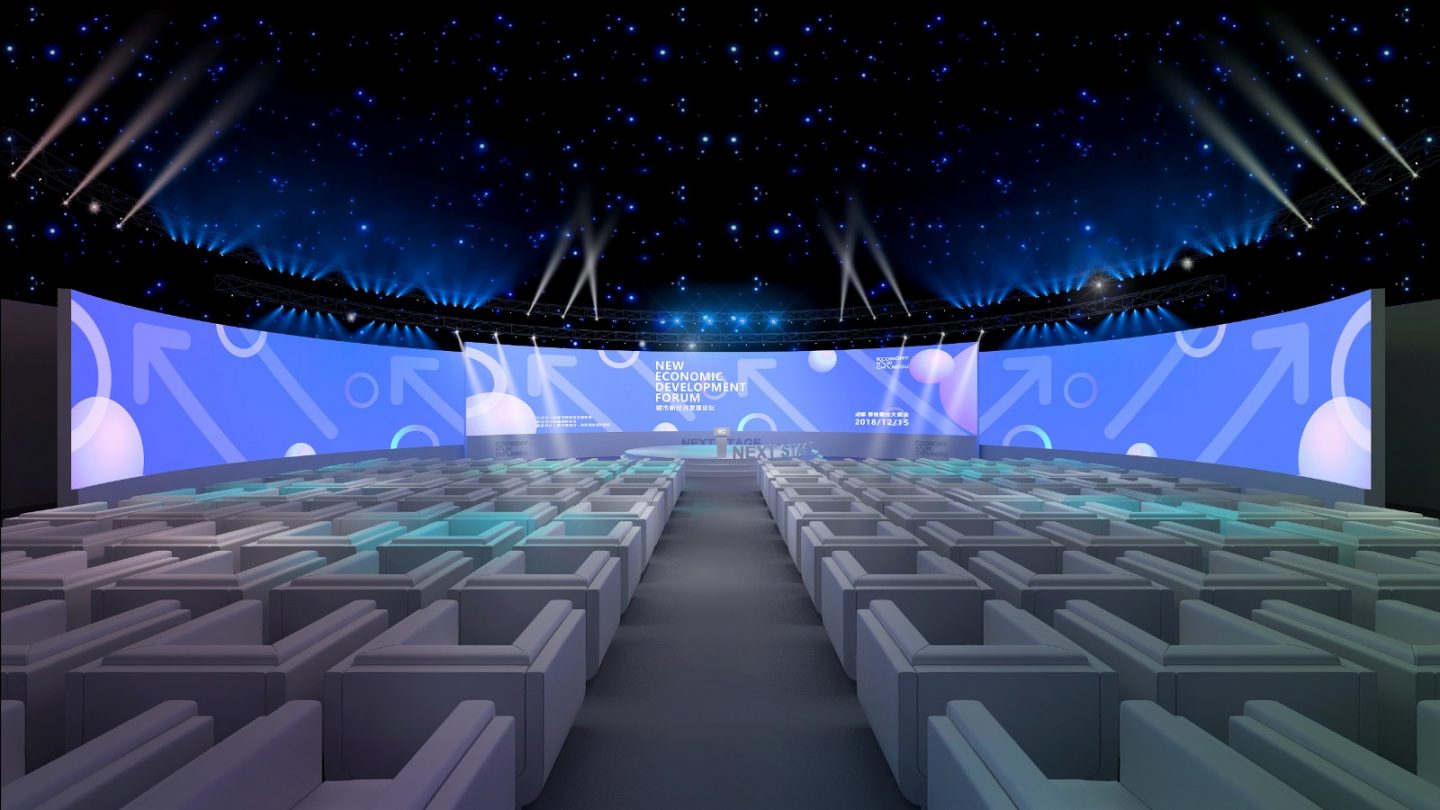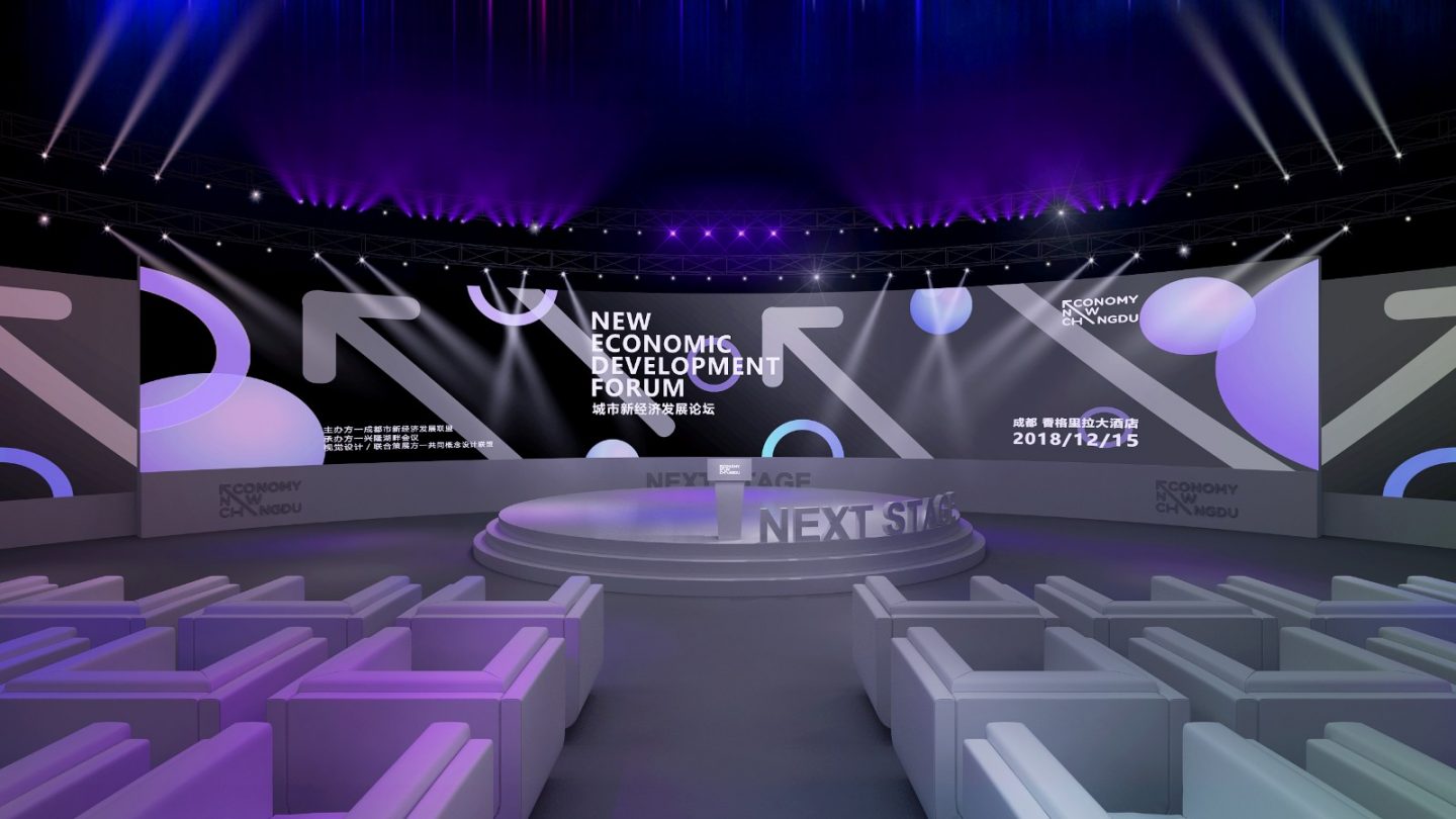 新經(jīng)濟(jì)與城市品牌會議的現(xiàn)場策劃設(shè)計選用了很清新的色彩,主題區(qū)域的天藍(lán)、明黃、草綠、粉紫、玫紅,再加上向上的箭頭設(shè)計,清新明了,提亮了現(xiàn)場的視覺效果。主會場的設(shè)計上,首先在視覺的選擇上用了粉紫,年輕、輕松的視覺氛圍又不失行業(yè)會議的高端大氣和專重,在座位的設(shè)置上,直接選用了單人沙發(fā)卡座,更是凸顯了嘉賓的尊貴感。睿智優(yōu)雅的過道設(shè)計,再次拉升了整場會議的格調(diào)。