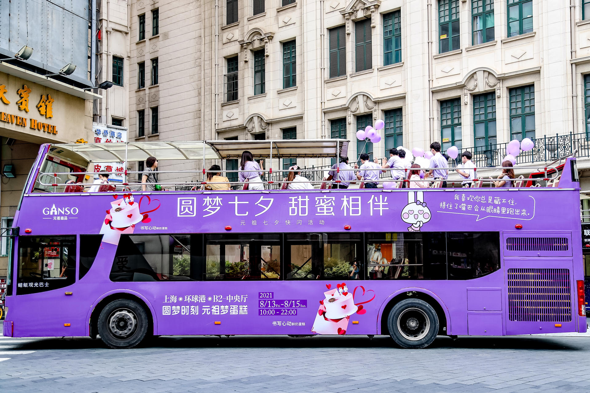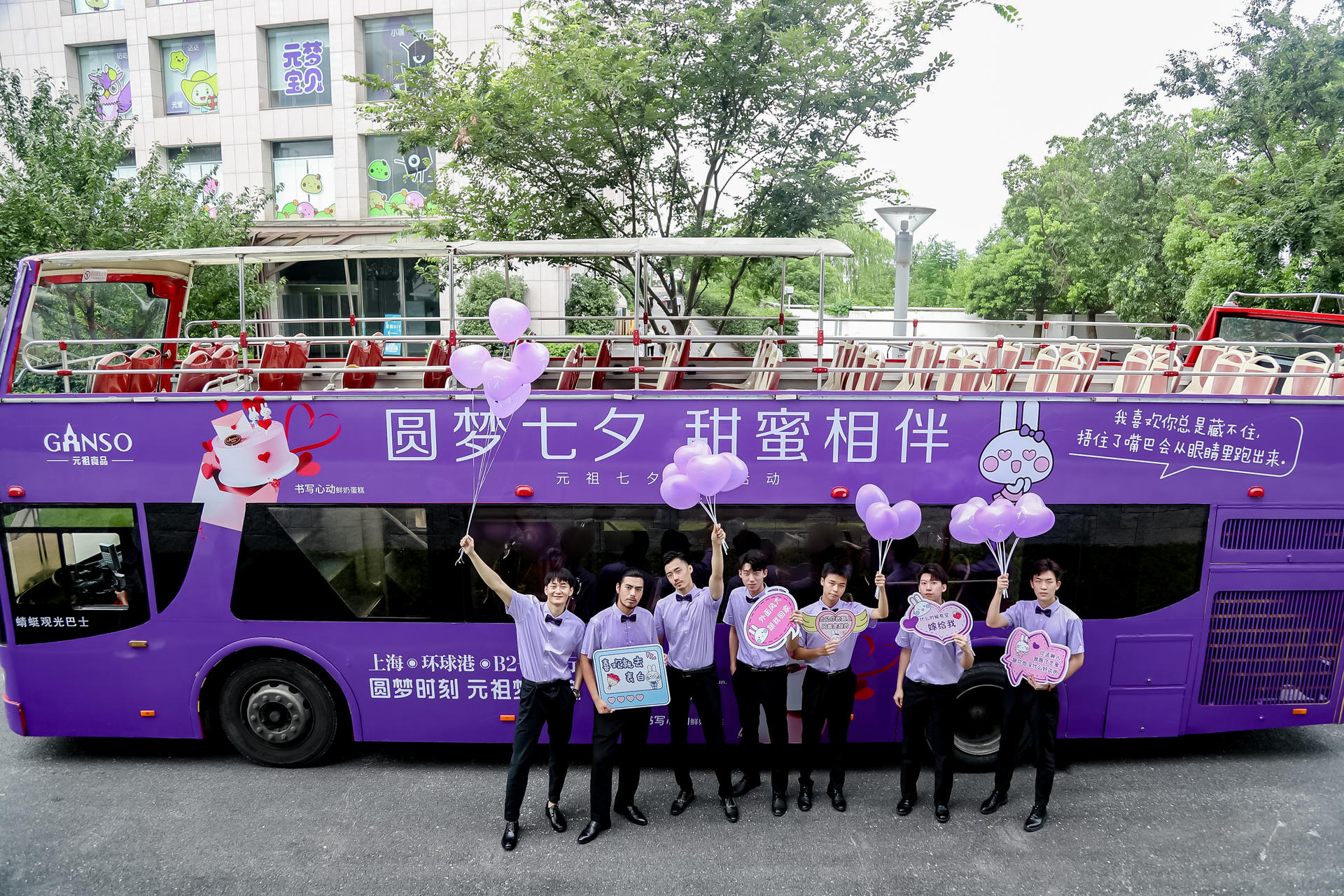 元祖還開啟“全城告白,心球快閃”巡回活動(dòng),一輛代表品牌形象的紫色圓夢巴士將載著kol、紫衣男模等在市區(qū)巡游,沿路會(huì)經(jīng)過豫園城隍廟、外灘、上海博物館、南京步行街、杜莎夫人蠟像館、南外灘老碼頭等知名景點(diǎn),路人可自由乘坐表白巴士進(jìn)行觀光,在一些站點(diǎn)男模還會(huì)下車與路人驚喜互動(dòng),送出繽紛氣球。