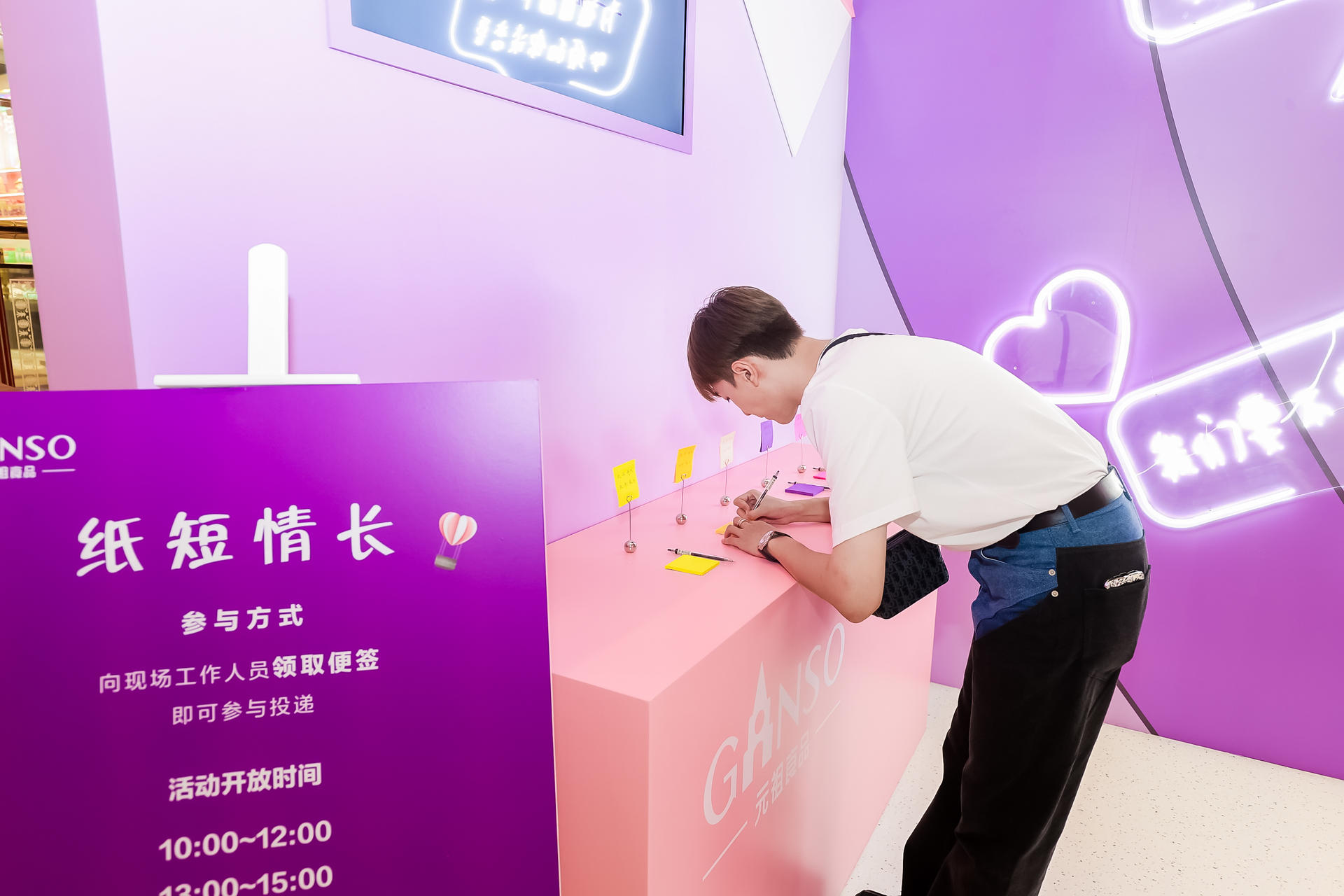 除了浪漫精心的布置,元祖在互動(dòng)體驗(yàn)上也花了很多心思。在七夕快閃店內(nèi)設(shè)置了書寫心動(dòng)、紙短情長互動(dòng)專區(qū),向現(xiàn)場工作人員領(lǐng)取便簽就可將最深情的告白化成一封真摯的情書,投遞進(jìn)收集心動(dòng)的信箱?,F(xiàn)場還有盲盒潮流玩法,如果想要知道愛情是苦是甜,就可掃碼關(guān)注元祖微信公眾號參與盲盒抽獎(jiǎng),憑兌換券至收銀臺(tái)就可兌獎(jiǎng)?,F(xiàn)場情侶們躍躍欲試,在甜蜜的互動(dòng)中共同體驗(yàn)了愛情的美好與心動(dòng)。元祖還為前來打卡的年輕人們設(shè)計(jì)了拍照墻,由浪漫元素創(chuàng)意組成的背景墻一秒就能拍出愛情大片,為你們定格這珍貴一刻。