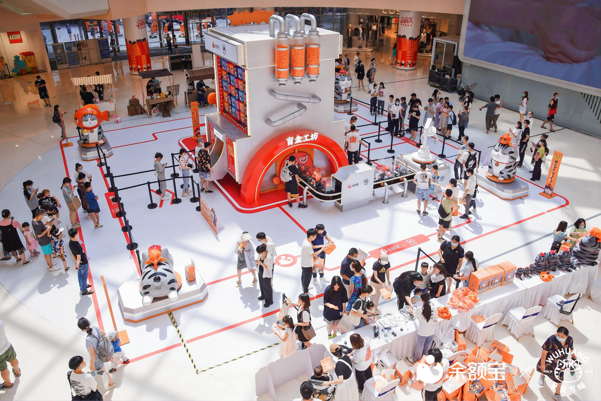 余額寶攜手網(wǎng)紅IP吾皇萬(wàn)睡盲盒工坊空降杭州城,貓和魚的首次合體,吾皇和余有有的友情故事,一整面免費(fèi)的聯(lián)名盲盒墻,還有超大隱藏款,引得眾多市民和網(wǎng)紅小哥哥小姐姐前來(lái)打卡。